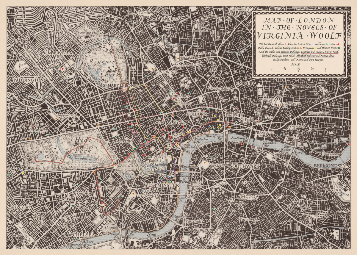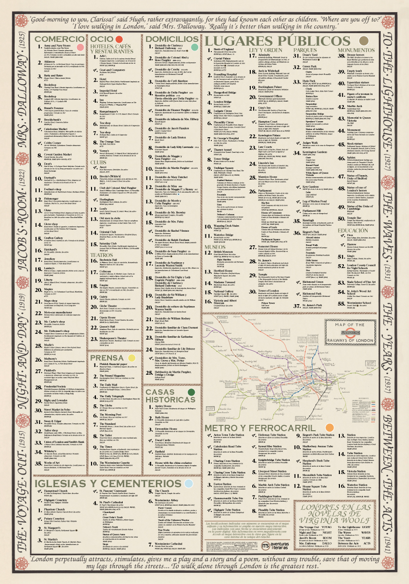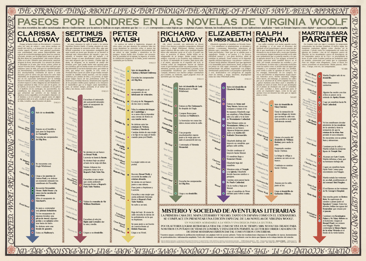 Gracias a este mapa literario podrá salir de dudas y recorrer, con todo detalle, el Londres de Virginia Woolf. Incluye un espectacular mapa con más de 200 localizaciones y un desplegable con las rutas de los principales personajes.